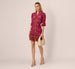Embolden your look no matter the season in this printed button down dress. Crafted from soft rayon fabric, this shirt dress features a flattering v-neck neckline and three-quarter-length bell sleeves. The pleated flounce hem and delicate shirring at the waist add playful movement at the short skirt, while a rectangle belt detailing enhances the waistline for a tailored fit. Boasting an abstract vintage print ensures ease and versatility for any occasion, making it a must-have addition to your wardrobe. Styled with nude heels and a crossbody bag, this three-quarter sleeve dress is an appropriate