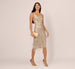 The allover linear sequin and bead embellishment on this shimmering sleeveless cocktail dress defines your waist and bust with clever pattern placement. The star of the show is the fringe hem with two layers of beaded fringe to give the look lots of extra sparkle. A back zipper finishes the design. Wear this dress anytime you're planning to hit the dance floor, because this style is made to catch the light with every movement.