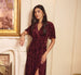 This lovely gown pairs the romance of floral burnout velvet fabric with an elegant full length silhouette. The faux wrap front creates a V-neckline, finishing in an elasticized waist for a comfortable fit. A matching tie belt, soft flutter sleeves and a dramatic side slit complete the look with graceful movement. Timeless sophistication makes this maxi dress the perfect choice for celebrating a special occasion.