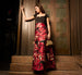 This elegant gown design pairs a structured black satin bodice with a colorful floral jacquard skirt creating a clever outfit-in-one effect. The cap sleeve bodice features a notched square neck with a back zipper ensuring a fitted look. The skirt flares out in a dramatic maxi length A-line cut, complete with convenient pockets at the side.