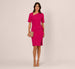 Asymmetric details set off this stylish crepe dress. This day dress features an asymmetrical neckline, sheath silhouette, and a ruffled accent at the hem that gives way to a slit in the skirt. Crafted from matte crepe fabric, this midi dress has flattering pleated draping. A zipper closure can be found at the back of this short sleeve dress. Paired with nude heels and classic earrings, this dress will take you from office to happy hour with ease.