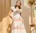 Effortlessly breezy and beautifully detailed, this embroidered midi dress is crafted from 100% cotton, making it lightweight and breathable for all-day wear. The flutter sleeves add a touch of charm and movement, while the stretch smocked waistband ensures a flattering fit that's as comfortable as it is stylish. Perfect for warm weather outings or casual gatherings, this dress combines ease and elegance in one timeless design.