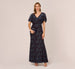 All your special occasions will be spent looking effortlessly chic when wearing our long gown, crafted of a beautifully textured burnout stretch velvet in a floral pattern. You'll strike a stunning figure, thanks to our iconic (and flattering) blouson silhouette. All the details: surplice neckline, floaty flutter sleeves and pleating at the knees for added movement and sway.
