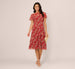 Flowy chiffon fabric in a sweet floral pattern adds subtle dimension to this pretty midi dress. The flutter sleeves are complemented by ruffle trim cascading down the skirt and along the open V back. The darted bust and back zipper ensure a perfect fit. Wear this lovely A line dress for a soft, romantic look at your next special occasion or big event.
