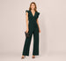 Designed with movement and polish in mind, this crepe jumpsuit offers a fresh alternative to eveningwear. The wide leg silhouette is anchored by a soft surplice neckline and flutter sleeves that lend a romantic touch. A faux wrap overlay sweeps across the pant, creating layered dimension, while a gently draped detail at the side waist adds a sculptural touch. Equal parts effortless and refined, this elegant jumpsuit transitions seamlessly from formal dinners to daytime celebrations with elevated ease.