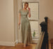 Hand Beaded Short Sleeve Floral Godet Gown In Frosted Sage