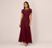 Hand Beaded Short Sleeve Floral Godet Gown In Mahogany