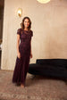 A work of art: our long and romantic gown dazzles with allover handsewn beading in a feminine floral pattern that catches the light with every twirl. A streamlined silhouette is eased with the mermaid skirt with godets to create the right amount of movement. All the details: our iconic (and flattering) no waist seam, sheer illusion yoke and cap sleeves. Sleek back zip closure.