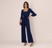 Your next night out just got more stylish with this wide leg jumpsuit. This jumpsuit features a fitted bodice with square neckline, three-quarter length bell sleeves, and wide legs. Crafted from knit crepe fabric, this jumpsuit has great stretch and is a figure flattering design. A self-tie front adds a pretty touch to this three-quarter length sleeve jumpsuit. A hidden zipper closure at the center back completes this wide leg jumpsuit. Nude heels and statement earrings are all this jumpsuit needs to shine for cocktail parties or formal events.