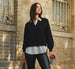 Long Sleeve Collared Printed Twover Sweater In Black W  Cream Abstract Dot