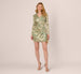 Make a striking entrance in this elegant long sleeve dress, featuring a botanical-inspired pattern with a dazzling metallic foil finish. The faux wrap design defines the silhouette while creating a timeless V-neckline and a beautifully draped effect at the front. Complete with a discreet back zipper closure, this dress combines effortless sophistication with modern glamour, making it perfect for special occasion.