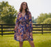 Light and flowing fabric gives this long sleeve dress its breezy feel. Tonal stripes shot through with metallic thread adds depth to the floral paisley print. Bishop sleeves and a stretch shirred waist create structure and definition in the silhouette. Perfect for brunch, casual parties, and days out on the town, this dress gives your look a sweet boho vibe.