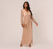 Classic and shimmering, our long gown fashioned from a crinkled-textured mesh is finished with an eye-catching metallic shine. We're obsessed with the twisted, gathered detail at the waist that flatters your figure. All the details: a faux wrap bodice, long bishop sleeves and a mermaid-style skirt with cascading overlay. Sleek back zip closure.