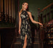 This gorgeous floor length gown introduces a new stretch knit fabric that matches comfort with opulence. The luminous metallic floral pattern showcases blooming roses from collar to hem. A halter neckline leads into a softly knotted and draped bodice detail that defines the waist, and the mermaid skirt is finished with a side slit for graceful movement. Classic yet fresh, this is an easy to wear evening dress that brings effortless glamor to weddings, formal soirees, and evening celebrations.