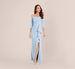 Opt for elegance in our off-the-shoulder long gown at your next special occasion. Crafted of a luxe knit crepe fabric with plenty of stretch for a comfortable fit. We're obsessed with the eye-catching cascading ruffle for architectural interest. All the details: sweetheart neckline, pleated bodice and three-quarter sleeves and front slit opening for ease of movement. Sleek back zip closure.