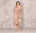 A masterful study in asymmetry, this elegant midi dress celebrates dynamic lines and draping. Crepe backed satin fabric gives the design its soft structure as well as its lustrous sheen. Gathered details at the shoulder highlight wide straps that drape to the side, exposing the other shoulder. The waist also features dramatic gathering that flows into an A line skirt. An asymmetrical hem finishes this striking evening look. You'll turn heads at your next big event or special occasion in this exquisitely crafted dress.