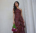 Romantic and refined, this one shoulder maxi gown blends timeless elegance with artful detail. A sheer overlay adorned in tonal floral embroidery adds texture and depth, while princess seams sculpt the bodice for a fitted look. The A line silhouette flows into a sweeping skirt, enhanced by a soft ruffle accent that cascades from the waist to the hem, adding graceful movement. Designed with a modern asymmetrical neckline, this gown brings elevated charm to weddings, formal evenings, and special celebrations.