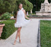 Halter neck organza mini shift with 3D flower hem detail and back bow.