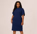 An elevated take on the little black dress, this cocktail style will shine at your next party. This dress features a boat neckline, fitted silhouette, and slit elbow-length sleeves trimmed in pearl beading. Crafted from knit crepe fabric with some stretch, this midi dress is as comfortable as itis versatile. A zipper center back closure and a slit at the back of the skirt completes this little black dress. From cocktail hour to semi formal attire events, this short sleeve dress is a iconic choice.