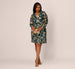This cute long sleeve cocktail dress is made in a crinkle fabric with a metallic sheen for a textured and shimmery finish. The faux wrap top and faux wrap skirt meet at the waist with a draped detail, adding dynamic structure to the look. This women's style closes with a back zipper in an effortless design that will quickly become your favorite style solution for everyday and dressy occasions.