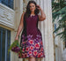 Plus Size Sleeveless Floral Border Jacquard Midi Dress In Plum Multi