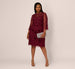 Romantic texture meets timeless elegance in this richly detailed dress. A mesh overlay creates a graceful illusion neckline with sheer three quarter length bell sleeves, while intricate beading and velvet floral appliques add dimension throughout. The sheath silhouette skims the body for a sleek but structured fit, finished with an above the knee hemline and a convenient back zipper closure.
