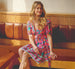 Bright and playful, this little dress is designed to make a statement. The puff sleeves feature delicate ruffle trim at the shoulders, complementing the feminine V neckline. A front button closure on the bodice adds a charming touch, while the matching waist tie cinches the A line silhouette for a defined fit. The flounce hem skirt creates effortless movement, and a back zipper closure ensures a seamless finish. This cute dress is perfectfor sunny days and special moments alike.