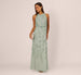 Sweet details give a nod to the season in this elegant beaded mermaid gown. This formal dress features a crew neckline, sleeveless blouson bodice, and a mermaid skirt. Fully lined and then topped with mesh, this evening gown is covered with sweet jasmine floral beading. An elastic waist gives this dress an easy fit for all body types. A zipper closure at the back of the style completes this beaded gown. Paired with nude heels and metallic accessories, this beautifully beaded dress is a radiant choice for formal and black-tie dress codes.