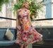 Pretty and polished, this colorful fit-and-flare dress is constructed in floral organza fabric for a soft but structured look. The draped high low skirt creates dramatic dimension and the collared surplice neckline gives you a face-framing moment. A back zipper closure ensures the perfect fit. Designed for celebrations and special moments, this floral midi dress is ready for every party.