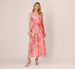 Embrace effortless elegance with this floral organza jumpsuit. The refined faux wrap neckline with a wide waist tie belt define your silhouette beautifully while adding a touch of sophistication. The wide-leg cut offers graceful movement, perfect for any special occasion. Featuring a back zipper closure for easy wear, this jumpsuit combines romantic charm with modern style in lightweight flowing fabric.