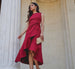 Classic and effortlessly elegant, this midi dress is a super wearable design that creates an elevated silhouette. Scuba fabric offers a stretchy but sculpted fit with princess seams for a defined waist. The faux wrap A line skirt features a gathered knot detail at the waist that flows into a ruffle hem for a high low moment. Perfect for dressy occasions, this lovely dress will be your new go to anytime you want a look with a little extra sophistication.
