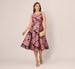 Metallic floral jacquard fabric gives this midi cocktail dress its soft texture and luminous sheen. Princess seams down the bodice meet with skirt pleats at the waist for a sculpted fit and flare silhouette. The boat neckline and midi hemline complete the silhouette with side pockets adding a convenient finishing touch. Classic styling and elevated details combine to make this dress an elegant choice for special occasions and dressy events.