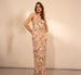 Sparkling beads and sequins highlight the intricate allover floral design on this lovely blush pink gown. The square neckline and square back are trimmed in matching beading for a pretty face-framing effect. Careful tailoring and a back zipper ensure a graceful column silhouette. Next time you want to turn heads at a big event, this is the evening dress for you.