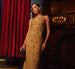 Get glammed up in this gorgeous gown, a maxi length design finished in allover beading. The shimmering handsewn embellishments are accented with 3D paillette flowers over the shoulders and bodice for an extra touch of sparkle. A V neck and an A line silhouette create an elegantly balanced silhouette. Perfect for weddings, galas, and formal occasions, this stunning evening dress is made to turn heads.