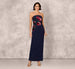 Understated yet utterly striking, this strapless gown is tailored from smooth crepe fabric in a sleek column silhouette that skims the figure. A vibrant floral motif handsewn with colorful sequins and beads adds artful shimmer across the bodice. Finished with a thigh high side slit for added movement, plus a concealed back zipper for a smooth fit, it's a refined statement piece for formal evenings.