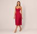 Crafted from lustrous stretch satin, this midi dress offers a modern take on vintage inspired romance. The drop waist fit and flare silhouette is enhanced by softly gathered pannier style detailing at the hips, creating graceful movement through the midcalf hemline. Spaghetti straps frame a bodice sculpted with princess and bustier seams for added structure. An adjustable corset back ensures a customizable fit. A refined choice for weddings, cocktail parties, and special occasions, this striking dress will turn heads anywhere you wear it.