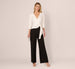 This sophisticated jumpsuit is the easiest way to look instantly styled. The bodice is crafted with lustrous satin fabric in contrast with the wide leg pants in matte crepe fabric, giving the illusion of an expertly coordinated outfit. The faux wrap top is finished with a draped detail at the hip, adding movement to the design. Wear this three quarter sleeve jumpsuit to your next big event or special occasion for a style that's as elegant as it is easy to wear.