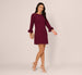 Dress to impress no matter where you are headed this season in this chic shift dress. This short dress features a shift silhouette, a crew neckline, and three-quarter sleeves with 3D floral cuffs. Crafted from a knit crepe fabric, this cocktail dress has plenty of stretch and no waist seam for an effortless for all body types. A hidden zipper closure at the center back of this shift dress completes the design. Dressed down with mules for a day at the office or dressed up with heels and a beaded clutch for a cocktail-attire event, this three-quarter sleeve dress is a versatile look.