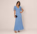 Stunning hand-applied embellishment gives this elegant blue gown a shimmering finish. Allover sequins sparkle with every movement and 3D flower details add luxe texture. Fluttery tulip sleeves and a mermaid cut create a romantic silhouette. The design is finished with a back zipper closure. Wear this evening dress to your next big event for a look that will turn heads.